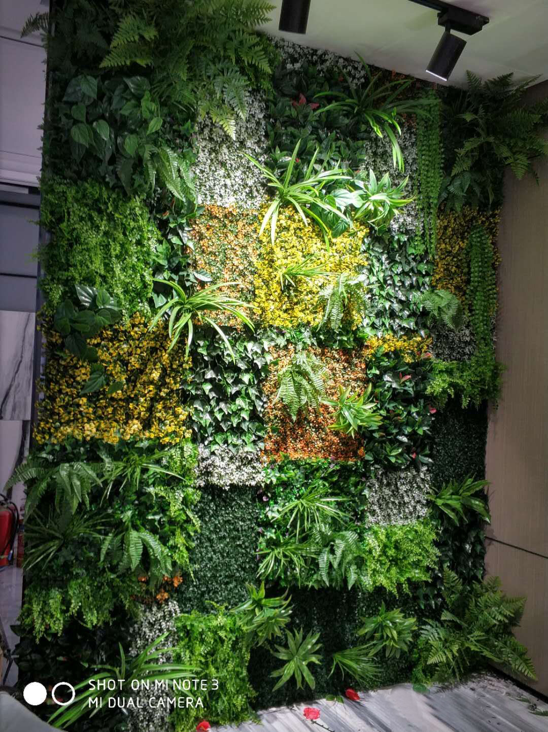 3.仿真植物施工簡單。只需要在墻體上用木板或是鋼網固定好植物墻的框架,然后將仿真植物產品進行拼接,以便安裝,最后根據自己的喜愛將植物自由搭配上去,植物厚密稀疏都是可以由調配的,需要注意的是產品與產品之間有類的插扣,一邊是凸的,一邊是凹的,拼接是注意保持同一方向性,以免容易脫落或是影響外觀。