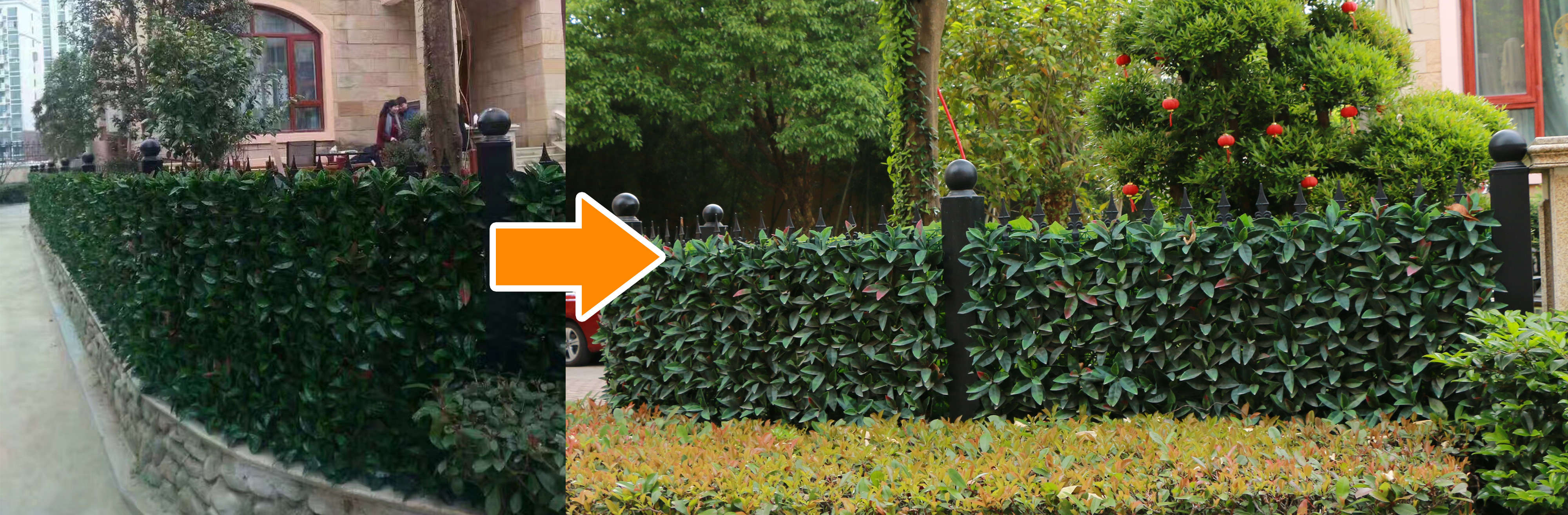 別墅的圍欄,歷經(jīng)3年,色彩沒有明顯變化,葉片完好無掉落